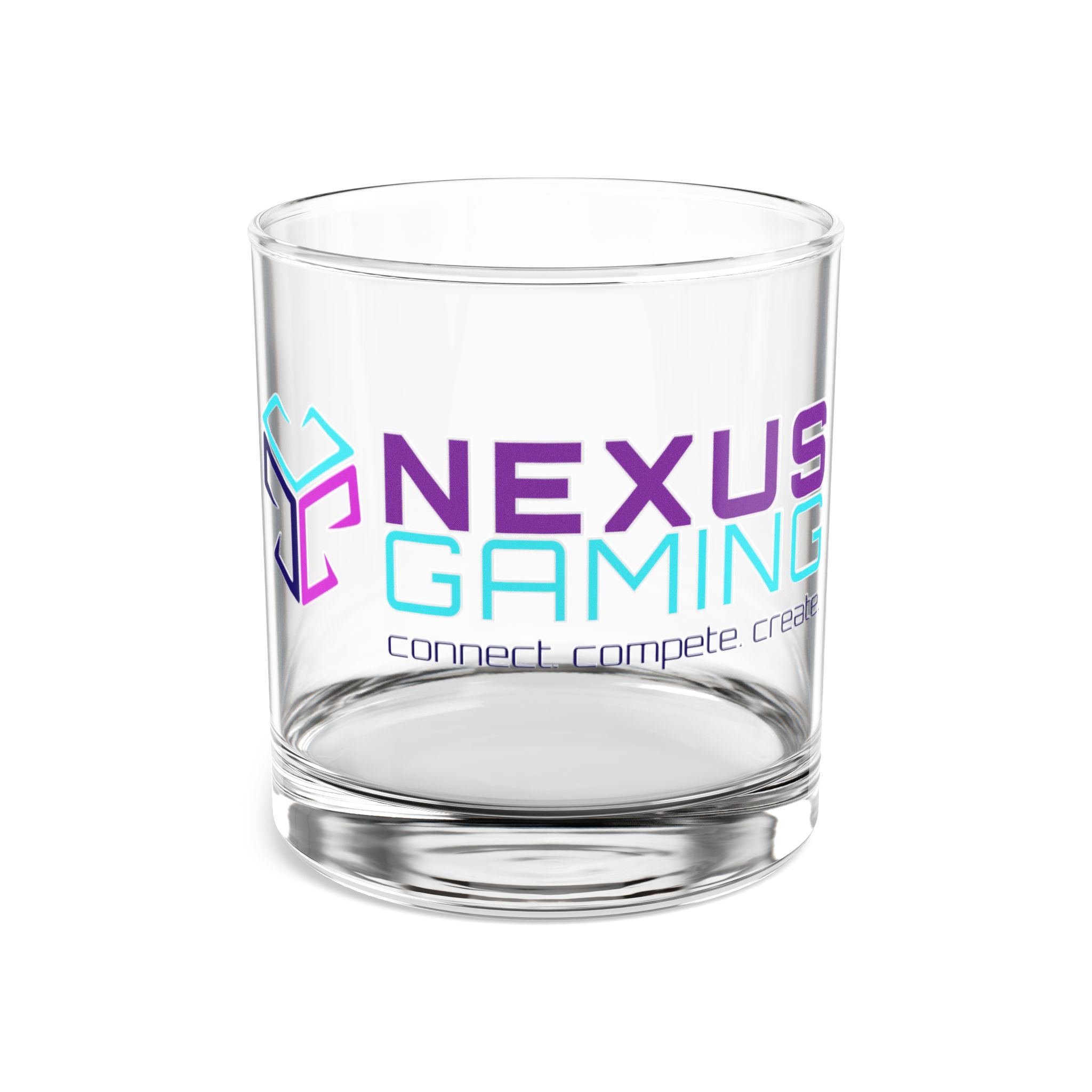 A low, sturdy 10oz rocks glass that brings a modern, gaming-inspired edge to your drink rotation. The wraparound print pops in vibrant, crisp colors against clear tempered glass, giving logo art a floating, holographic feel. It feels solid in the hand with a thick base and balanced weight, made to sit steady on your desk or bar shelf. Use it for straight spirits, cocktails, or as a dedicated water or energy-drink glass during long sessions. The glass is made in the USA, BPA-free, and labeled discreetly with a barcode under the bottom. Hand-wash recommended to keep the print bright and sharp.