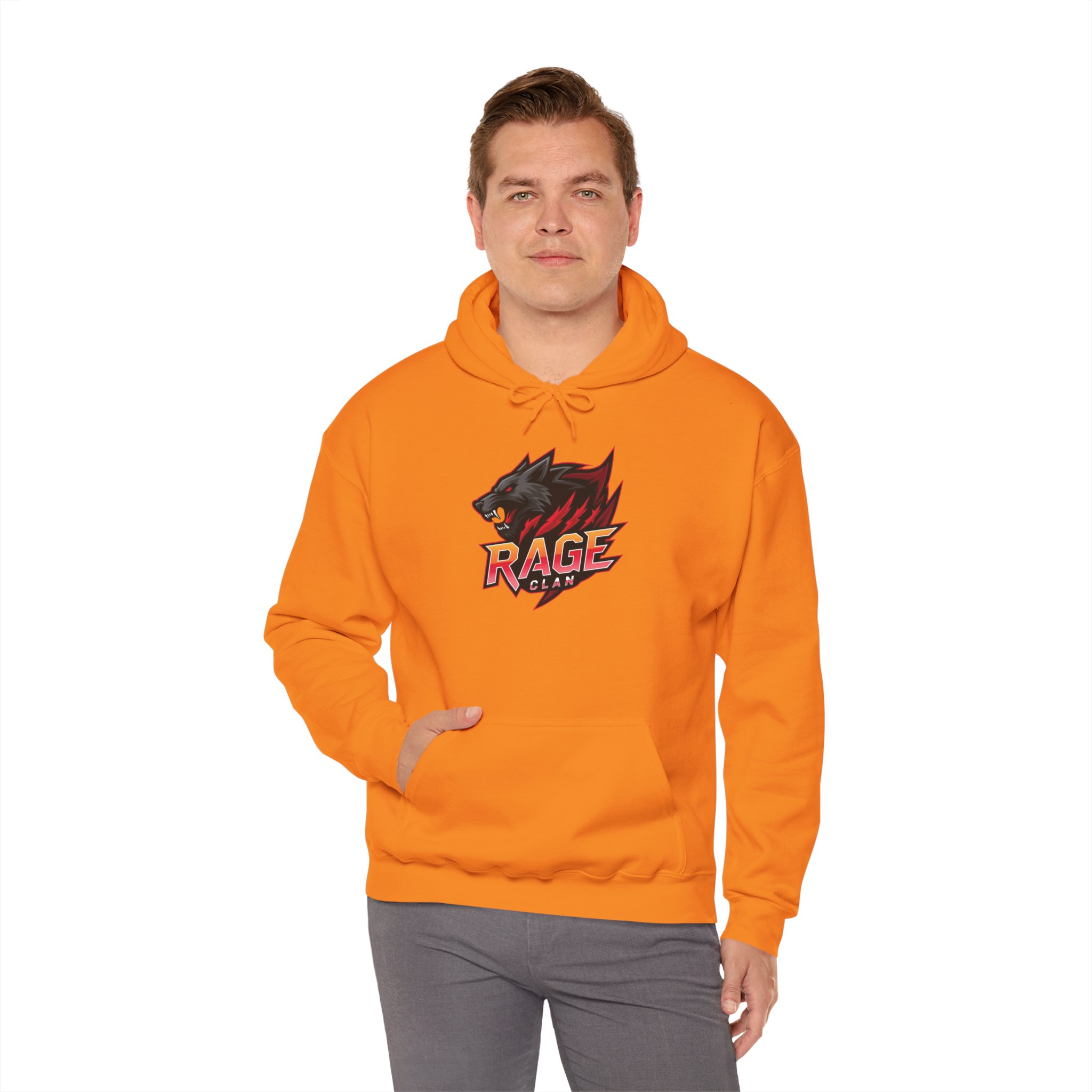 Slip into a hoodie that feels like stepping into the arena. This hoodie carries the iconic Rage Clan wolf-and-flame logo — sharp, gritty, and ready for action. It’s the kind of piece you reach for when you want to be seen: during late-night practice, on-stream sessions, or when you meet up with your crew before a big game. The roomy kangaroo pocket and double-lined hood make it easy to layer and keep warm without losing mobility. Built from a sturdy cotton-poly blend, it holds prints and embroidery cleanly and resists shrinking so the design stays crisp through washes. Wear it when you need a little edge and a lot of comfort.